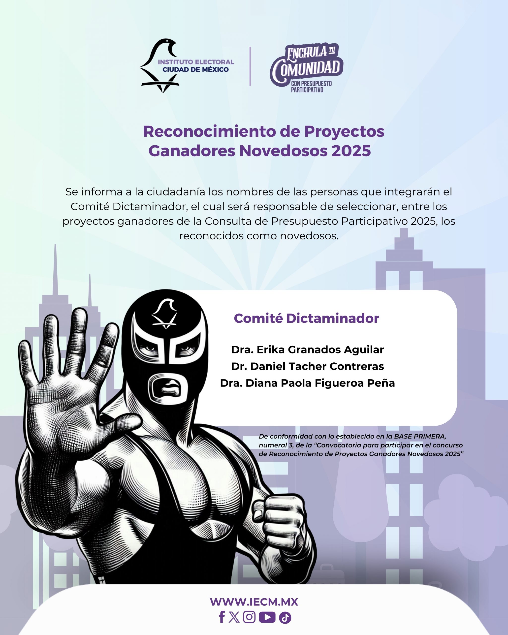 Conoce el nombre de las personas que conformarán el Comité Dictaminador para el Reconocimiento de los Proyectos Ganadores Novedosos 2025.