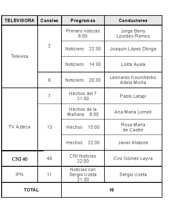 NOTICIARIOS DE TELEVISIÓN MONITOREADOS