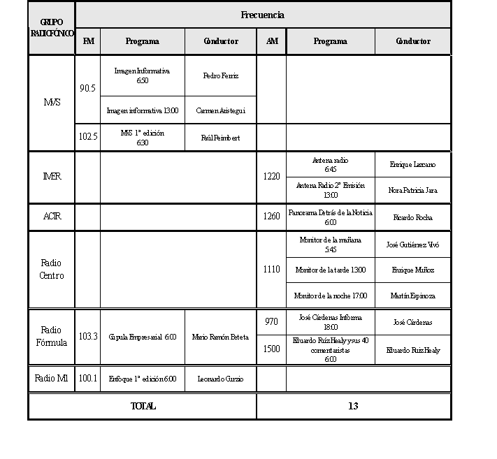 NOTICIARIOS DE RADIO MONITOREADOS